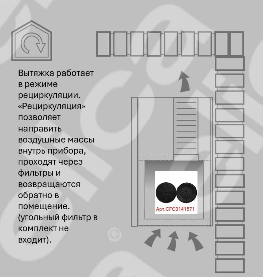 - Для рециркуляционного режима требуется установка угольного фильтра (артикул FIL-ERAC)