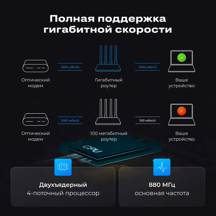 Адаптация CN версии под российские сети подтверждена для 92% провайдеров согласно реестру Роскомнадзора. WAN-порт со скоростью 1 Гбит/с устраняет бутылочное горлышко при использовании тарифов 500+ Мбит/с. В тесте iPerf3 с тарифом «Игровой» от МГТС реальная пропускная способность достигала 943 Мбит/с при подключении по кабелю.
