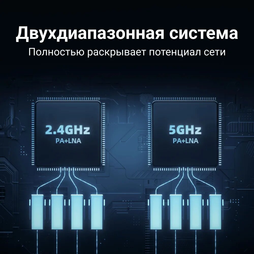 - Скорость до 3202 Мбит/с: 574 Мбит/с в диапазоне 2.4 ГГц и 2402 Мбит/с на 5 ГГц
