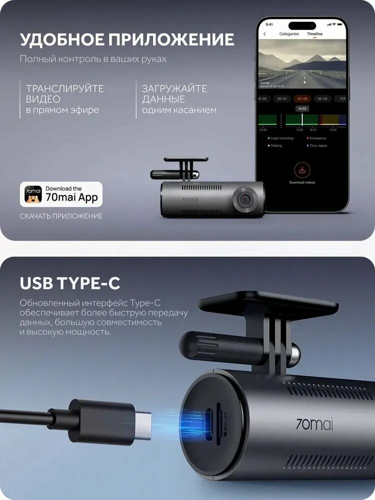 - Беспроводное подключение — вместо Mi Home используйте приложение 70mai Lite
