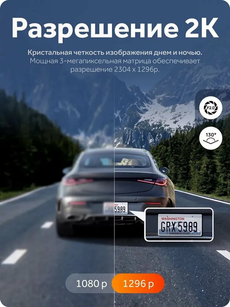 - Угол обзора 130° при диафрагме F2.0 — захватывает 3 полосы движения