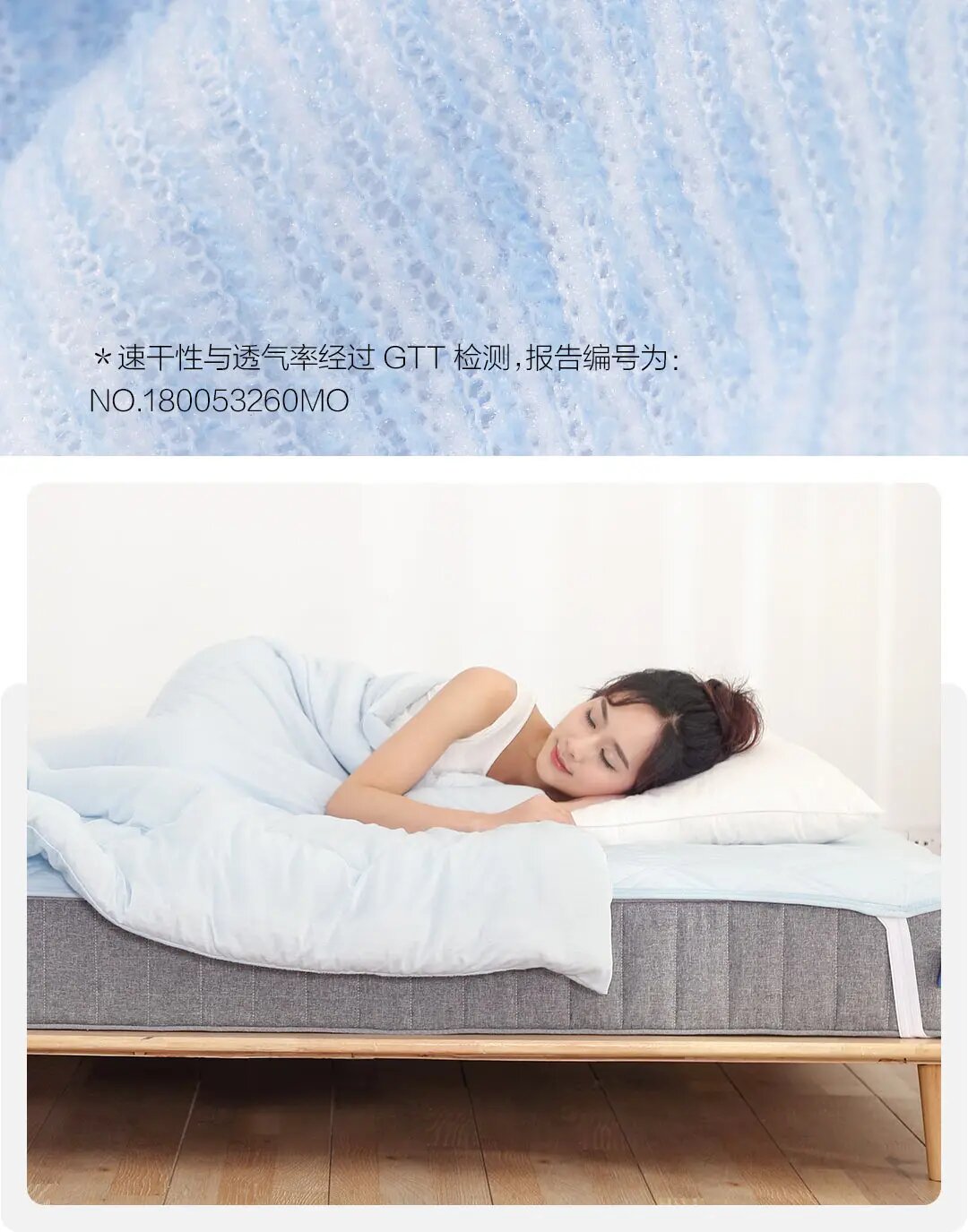 Одеяло совместимо с пододеяльниками стандарта 160×210 см. Для антистатического эффекта используйте наволочки серии 8h Pro с технологией CopperClean. В холодный сезон подключайте электроодеяло Mi Smart Heating без риска перегрева - интеллектуальный контроль температуры через Bluetooth.