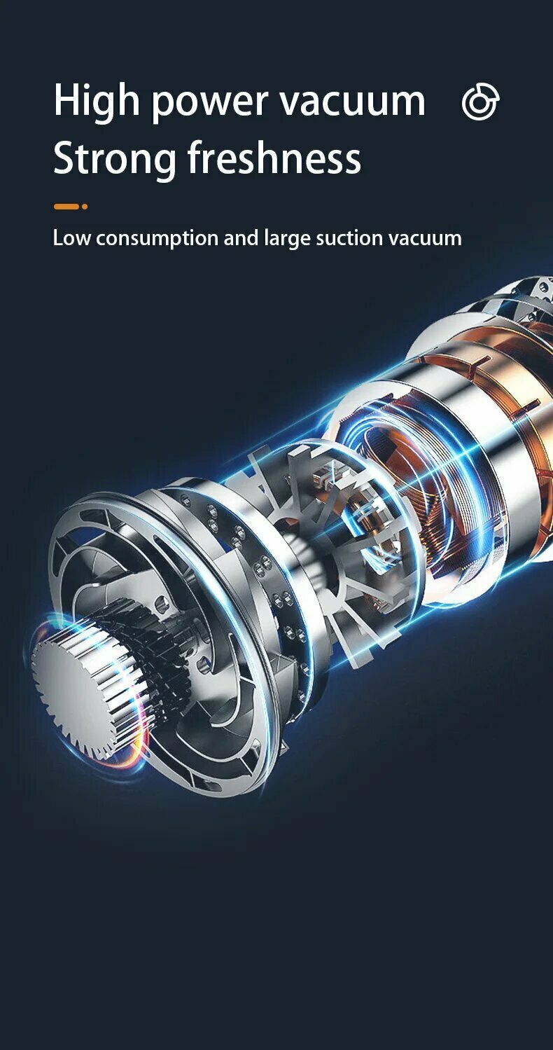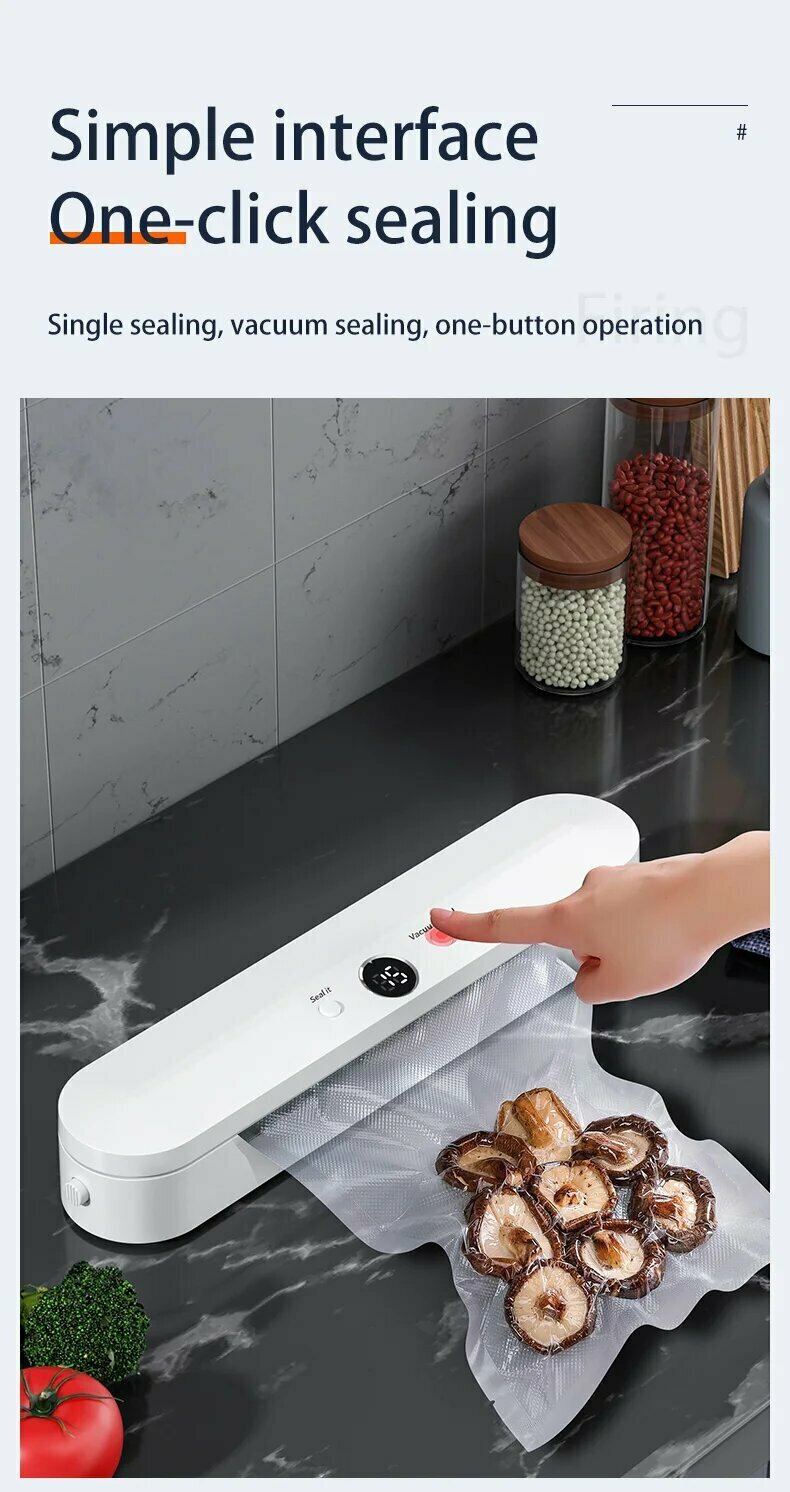 Мощный насос 50 кПа создает глубокий вакуум за 20 секунд, полностью удаляя кислород из пакетов. Технология импульсной откачки предотвращает деформацию нежных продуктов. Встроенный нагревательный элемент в 240°C обеспечивает надежную двойную сварку шва.