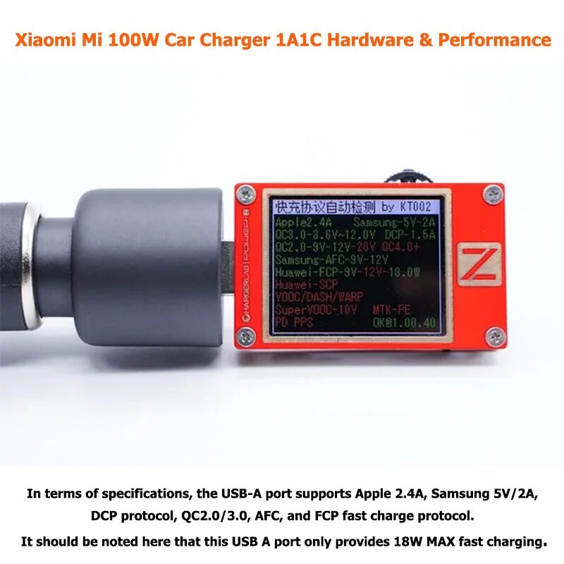 Xiaomi 120W Car Charger использует многоуровневую систему контроля параметров. Настраиваемая мощность 120/100/67W распределяется через USB Power Delivery 3.0 со следующими характеристиками: