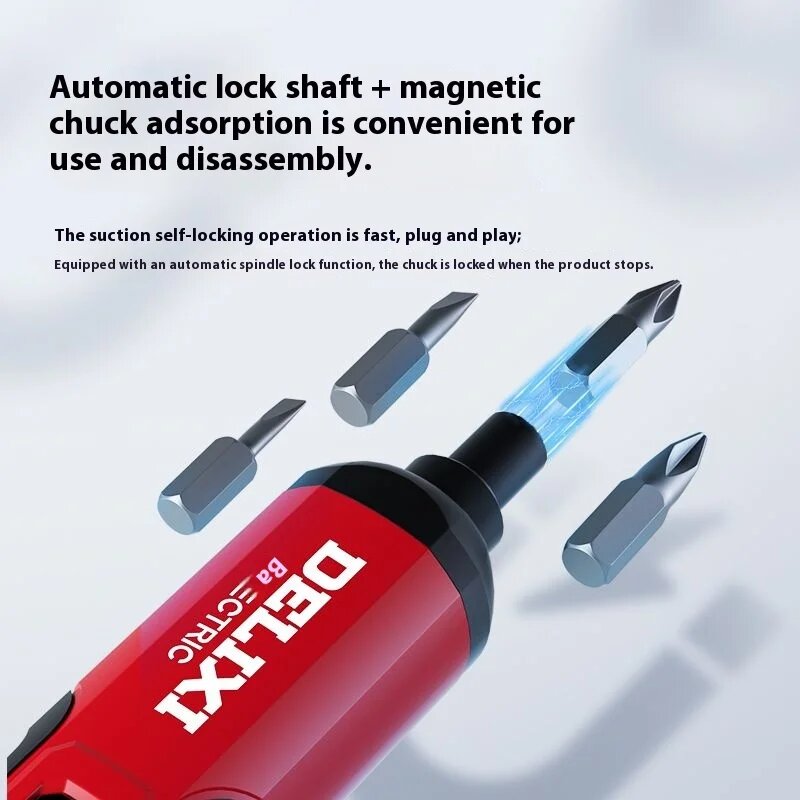 Аккумуляторная отвертка Xiaomi Delixi 4В оснащена перезаряжаемым литий-ионным аккумулятором ёмкостью 2000 мАч, что обеспечивает до 4 часов непрерывной работы при сборке мебели. Прямой хвостовик типа ¼” (6.35 мм) поддерживает стандартные биты Philips/Sloter/Torx для закручивания шурупов в дереве, пластике и тонком металле.