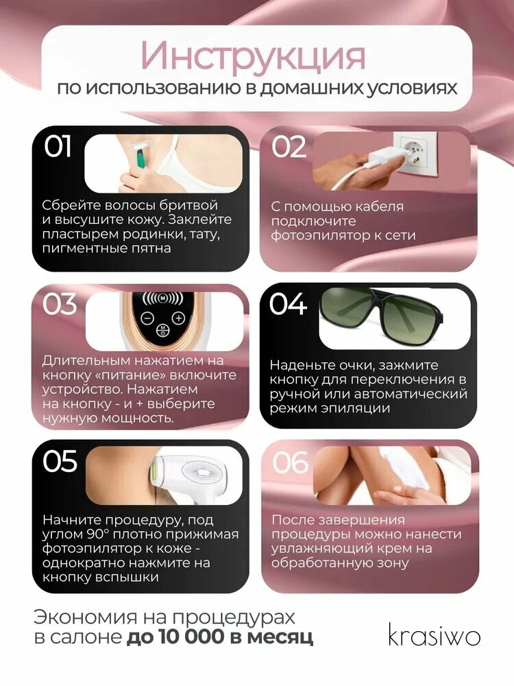IPL-фотоэпилятор Xiaomi ФЭ использует импульсный свет широкого спектра (590-1200 нм) для разрушения волосяных фолликулов. Устройство предлагает: