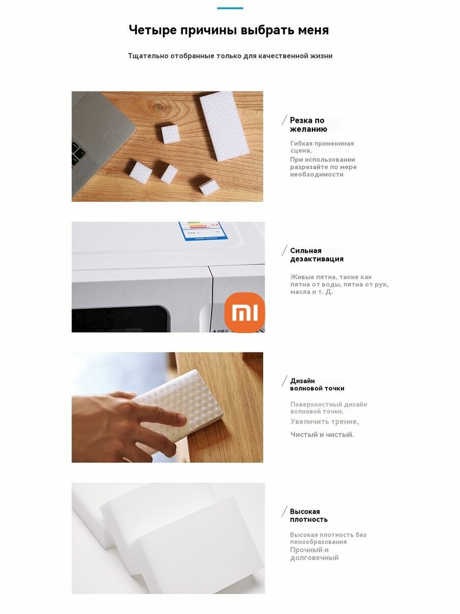 Меламиновая основа губок Xiaomi работает по принципу микроабразива — при контакте с водой материал активирует миллионы полимерных волокон, которые растворяют загрязнения механическим путем. В отличие от химических очистителей, технология не оставляет токсичных испарений: тесты в лаборатории SGS подтвердили отсутствие фенолов и формальдегидов.