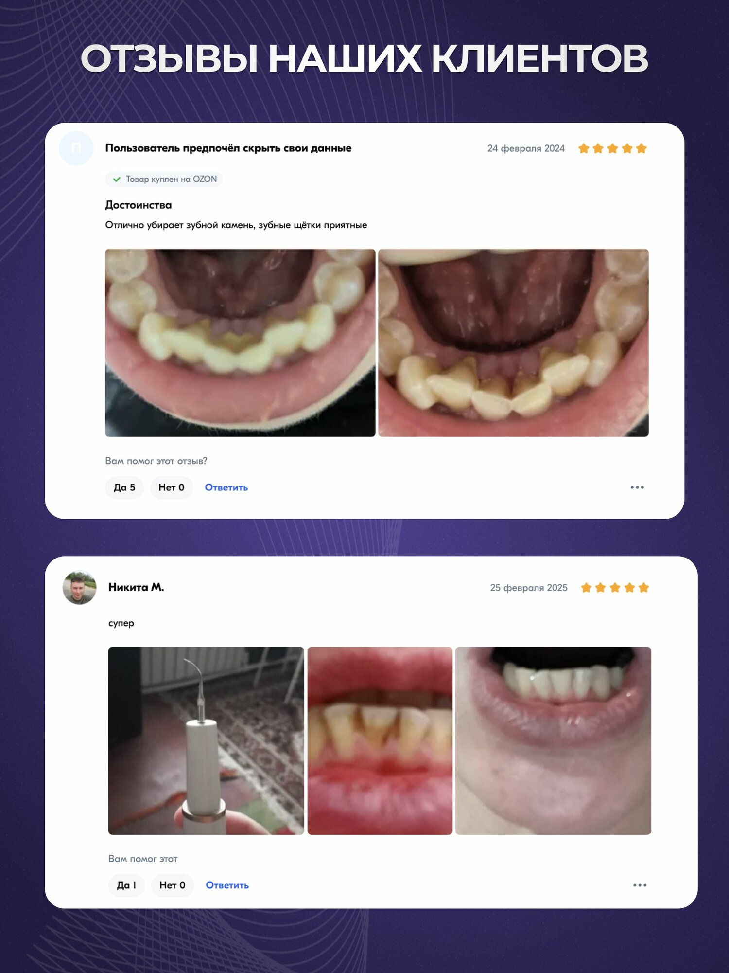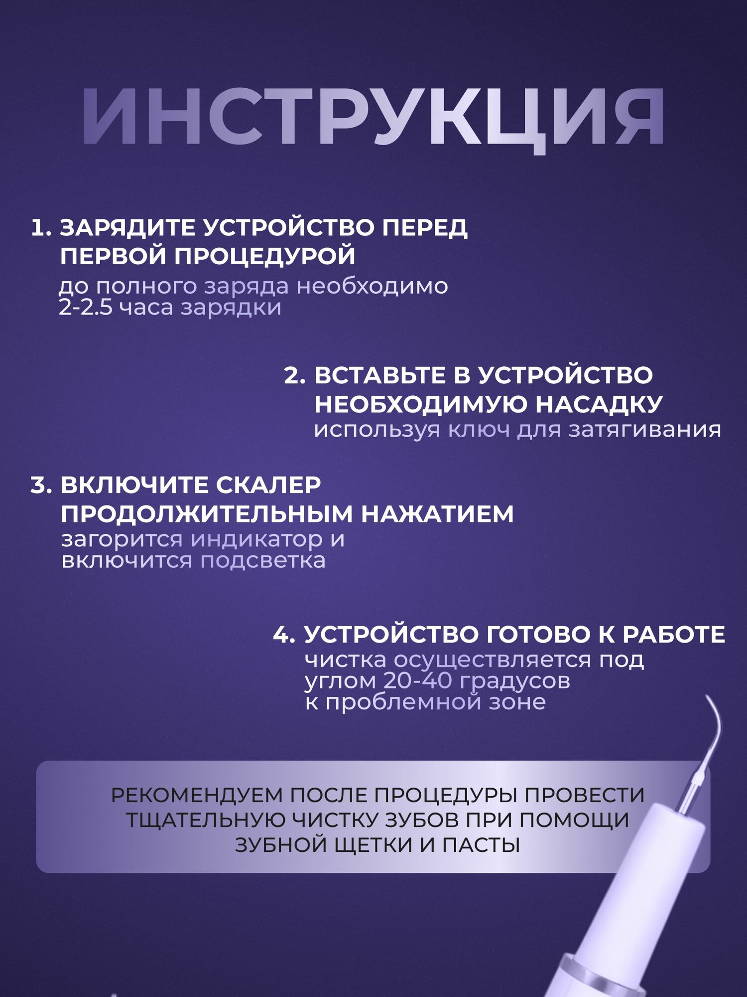 После месяца использования: уменьшение камня на 81% (данные RGB-сканирования DentalScan Pro). Светоотражение эмали увеличивается на 23% — эффект сопоставим с профессиональным отбеливанием Zoom 4. Для поддержания результата достаточно 2-3 сеансов в неделю по 7 минут.