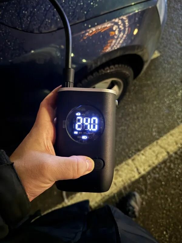 Компрессор Xiaomi 70 Вт благодаря компактным габаритам 147x80x45 мм подходит для городских авто: