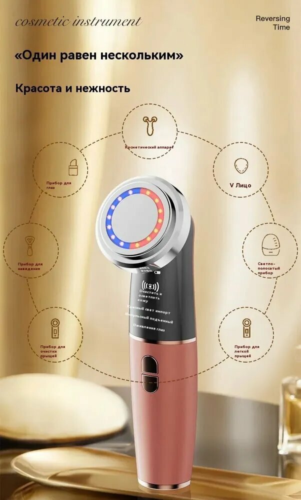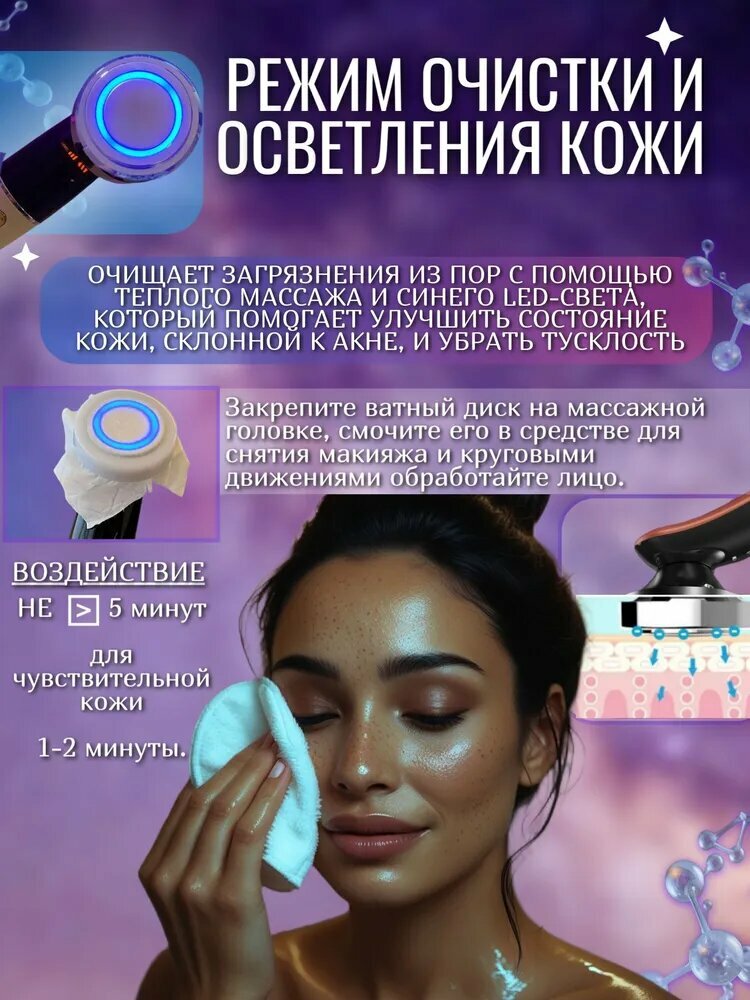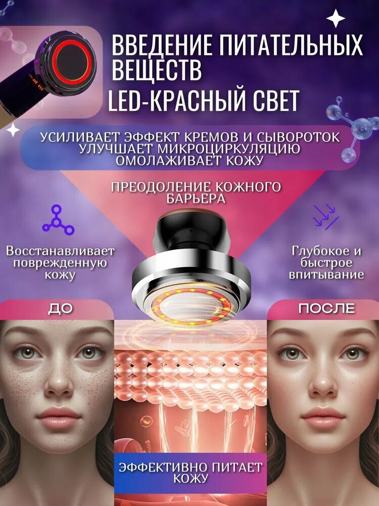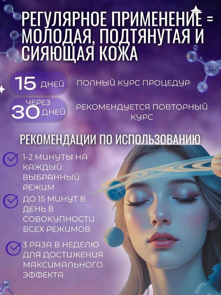 - LED-панель с 4 спектрами (синий - против акне, красный - стимуляция коллагена)