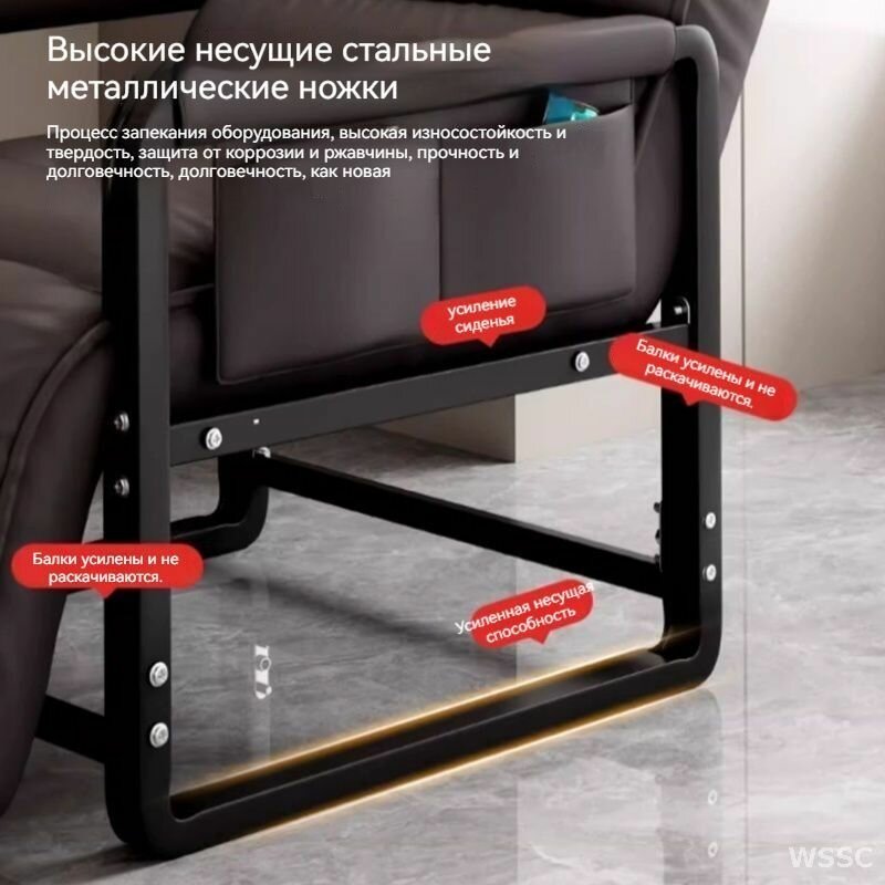 Металлокаркас с порошковой покраской обеспечивает долговечность кресла-кровати Xiaomi при нагрузке до 150 кг. В отличие от деревянных аналогов, металлическая основа предотвращает деформацию при интенсивной эксплуатации. Габариты в сложенном режиме 55х60х94 см позволяют разместить мебель даже в компактных комнатах - разложенное состояние увеличивает спальное место до 190 см.