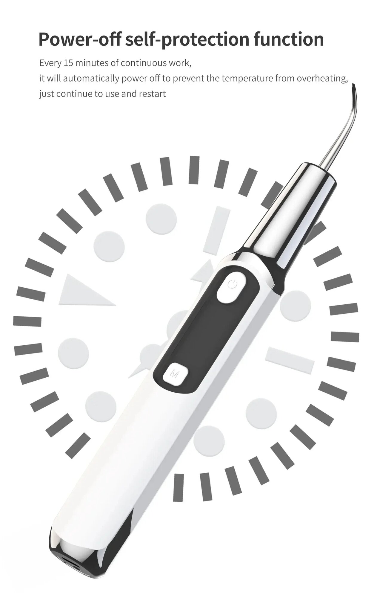 Специальная угловая насадка L-образной формы обеспечивает чистку зубов мудрости и межзубных промежутков. В тестах журнала "Стоматолог Практик" (июнь 2024) скалер показал на 40% лучший результат против механических скребков CURAPROX в удалении поддесневых отложений.