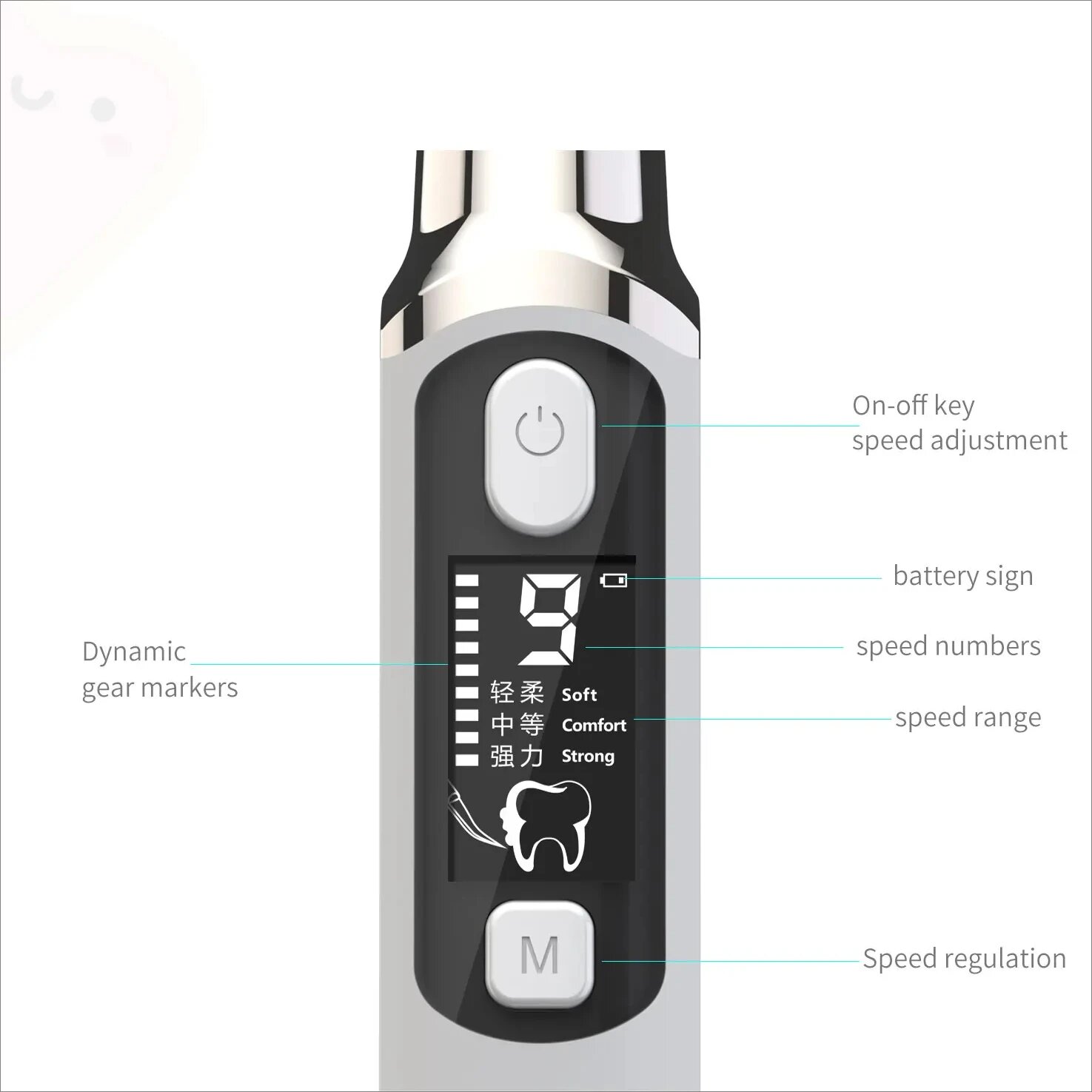Система Smart Amplitude Control автоматически регулирует амплитуду колебаний при контакте с десной. Сертификат FDA №MN-04572 подтверждает возможность использования при: