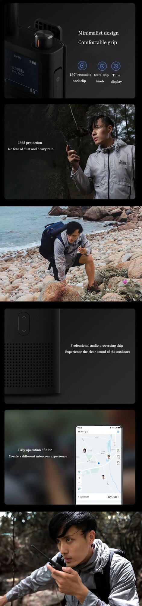 Walkie Talkie 2 устанавливает новые стандарты портативной связи: дальность работы до 6 км на открытом пространстве и до 1,5 км в плотной городской застройке. Благодаря литий-полимерному аккумулятору 3000 мАч устройство работает до 8 часов в активном режиме или 6 суток в ожидании. Корпус с сертификатом IP54 защищает электронику от строительной пыли и косого дождя под углом 60°.
