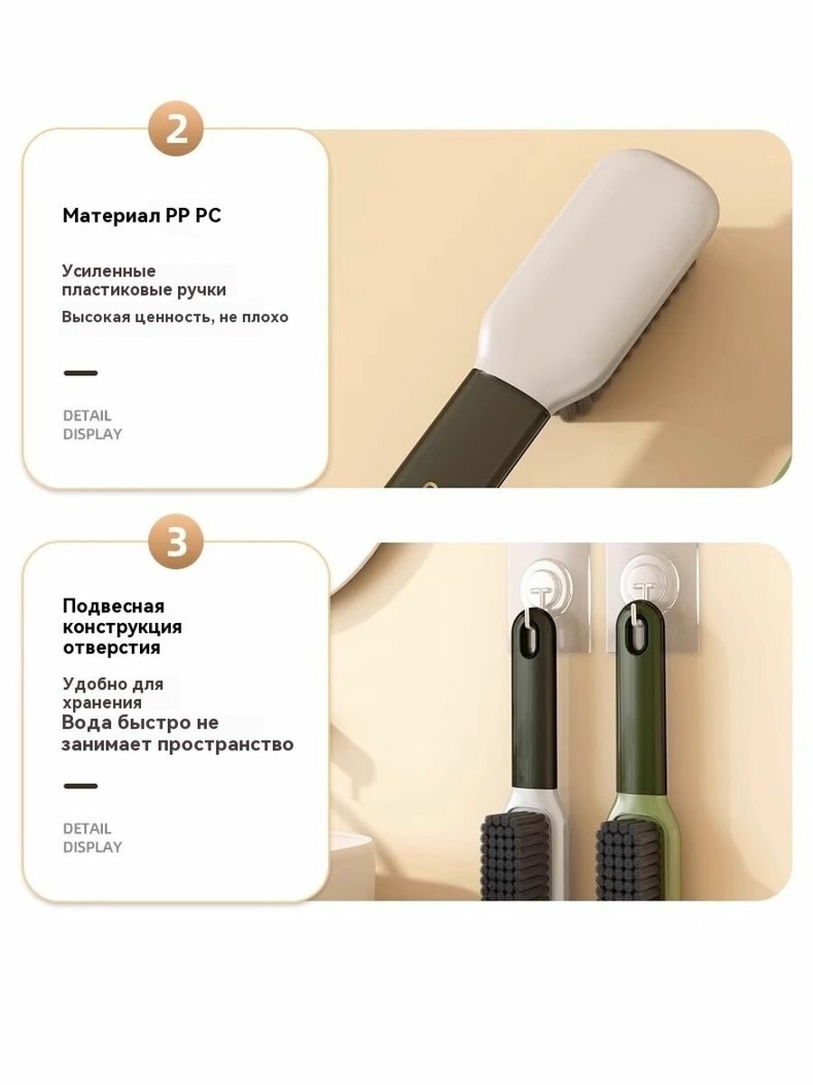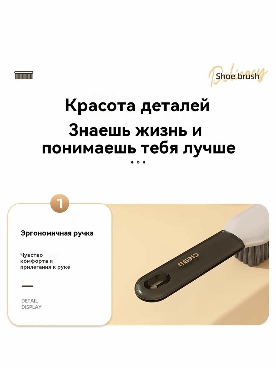 - Двойная щетина: жёсткие нейлоновые волокна (70D) для подошв + мягкий ворс для верха обуви