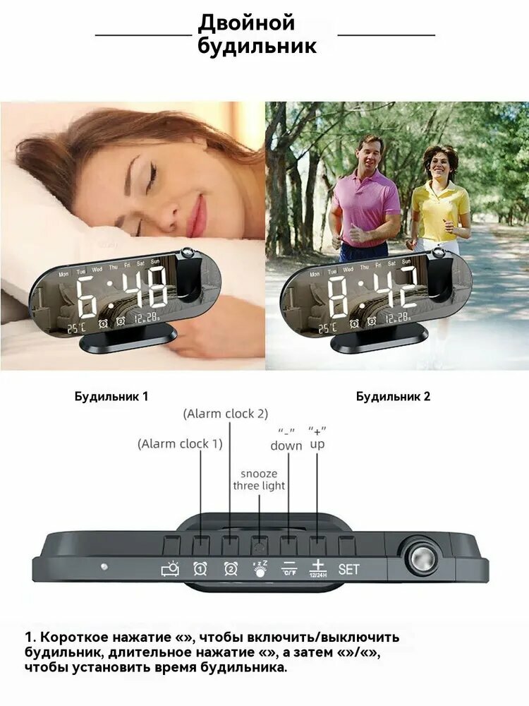 - Трехступенчатая настройка будильника с функцией повтора через 5 минут