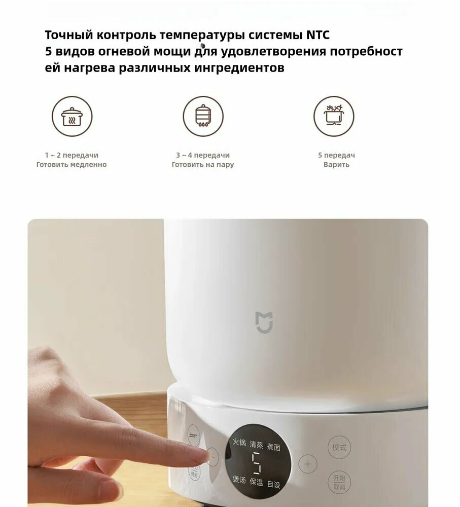 Мощность 1000W позволяет Xiaomi Mijia Multifunctional готовить на 30% быстрее аналогов мощностью 700-800W. Использование NTC-датчика обеспечивает температурную точность ±2°C против ±5°C у конкурентов.