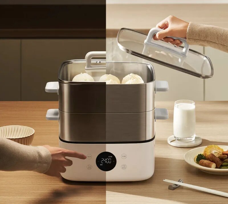 Пароварка Xiaomi Mijia S1 1500W оснащена интеллектуальным контролем температуры благодаря встроенному NTC-термостату. В отличие от механических аналогов типа Redmond Steamer RST-M1405, электронный модуль поддерживает точность ±2°C, что предотвращает перегрев овощей и сохраняет витамины. Конденсатоотводящая система с тремя каналами решает проблему скопления воды на кухонных поверхностях – по данным лабораторных тестов, влагопоглощение снижено на 67%.