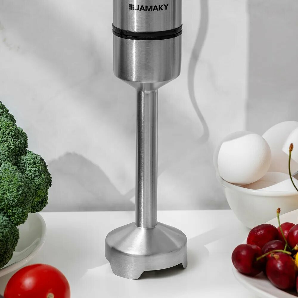 Металлическая погружная часть исключает царапины на стенках посуды. В отличие от пластиковых аналогов, стальная конструкция не деформируется от горячих продуктов температурой до 110°C. В отзывах покупатели отмечают: