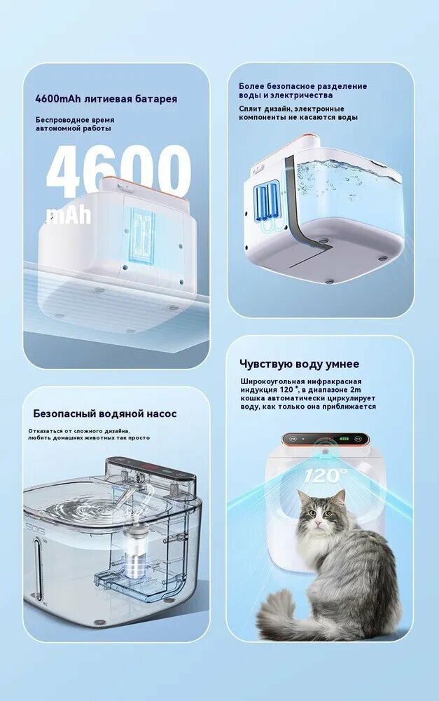 - Для собак: режим фонтана+увеличенный резервуар 2,5л