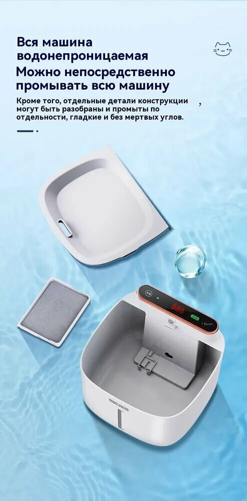 - Фонтанный режим − обогащает воду кислородом, снижая риск мочекаменной болезни (по данным ветеринарных исследований PetsHealth Journal 2023)