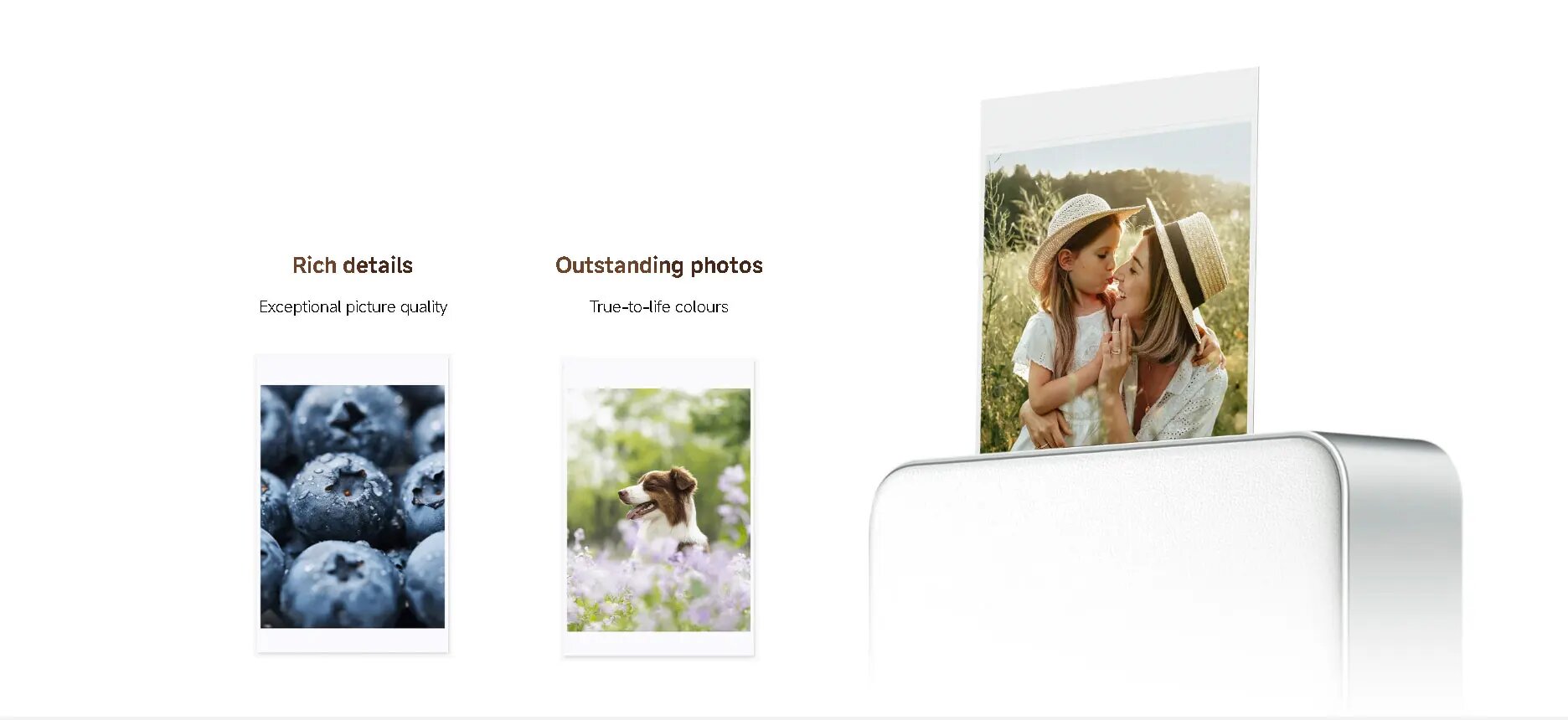 - Цветокоррекция - встроенный алгоритм компенсирует разницу между экраном смартфона и печатью благодаря калибровке термоголовки при каждой загрузке бумаги.