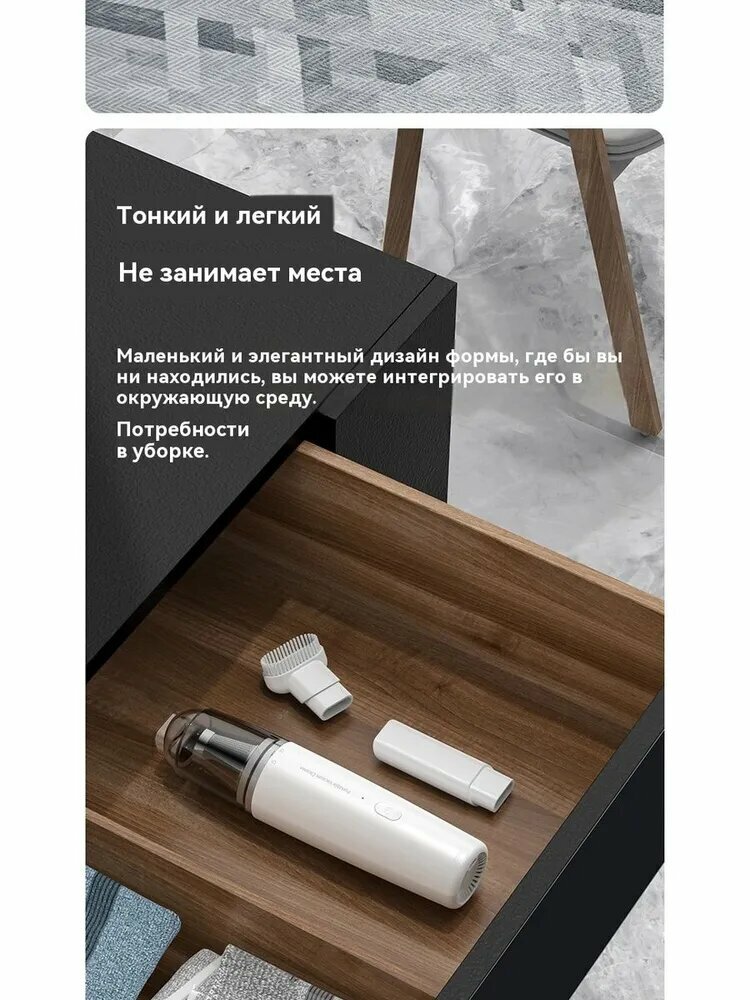 Беспроводной пылесос Xiaomi с мощностью всасывания 50 Вт справляется с крошками на автоковрах и пылью в межстекольных пространствах. Инженеры бренда разработали эргономичный корпус весом 850 грамм, который удобно держать одной рукой во время чистки салонных кресел. Тесты на ковролине и пластиковых поверхностях подтвердили способность устройства собирать частицы размером до 0.3 мм за один проход.