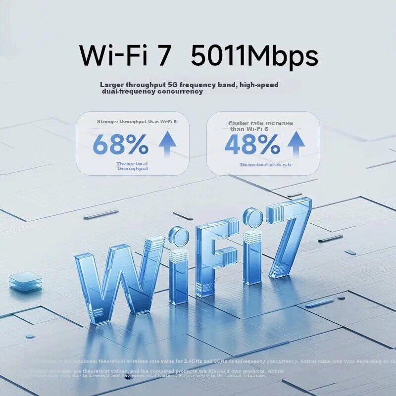 Роутер Xiaomi BE5000 с поддержкой стандарта Wi-Fi 7 обеспечивает беспроводные соединения до 5011 Мбит/с за счет двухдиапазонной технологии (2.4 ГГц + 5 ГГц). Четыре LAN-порта 2.5G позволяют напрямую подключать игровые ПК, серверы NAS и IP-камеры без потери скорости. Режим Dual Broadband Access объединяет два интернет-канала от разных провайдеров, увеличивая стабильность соединения.