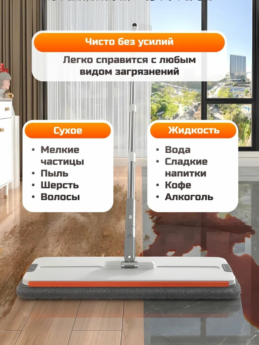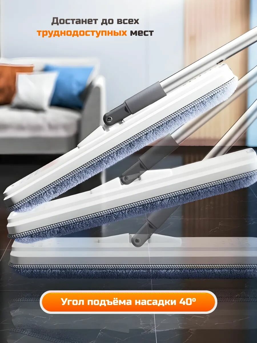 Швабра Xiaomi сочетает алюминиевый сплав ручки с телескопическим механизмом, позволяющим регулировать длину от 90 до 132 см. Это решает 3 основные проблемы: