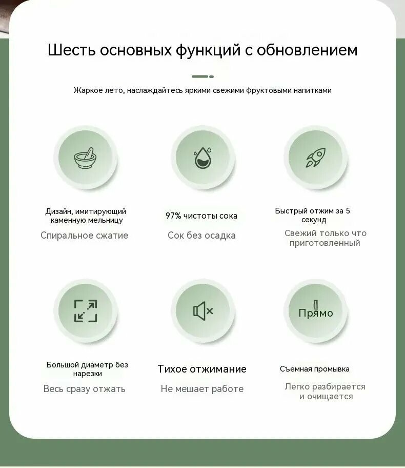 - Интеллектуальное управление (5 предустановок: цитрус, ягоды, зелень)