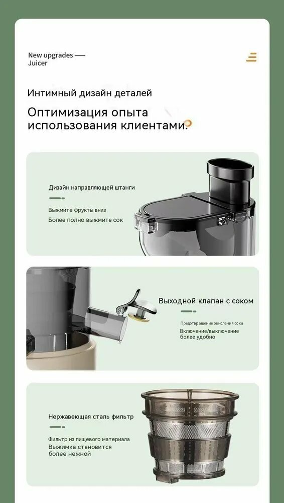 - Сохранение витаминов: при медленном отжиме температура не превышает 40°C