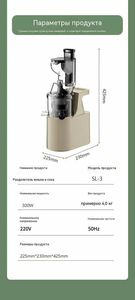 - Потребление энергии: 0.12 кВт·ч при обработке 3 кг яблок (тесты YouTube-канала 'ТехноМания')