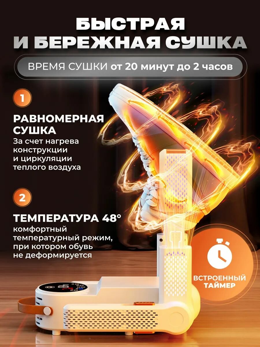 - Проблема деформации решается интеллектуальным таймером: автоматическое отключение через 180 минут предотвращает перегрев даже при случайном оставлении обуви в устройстве