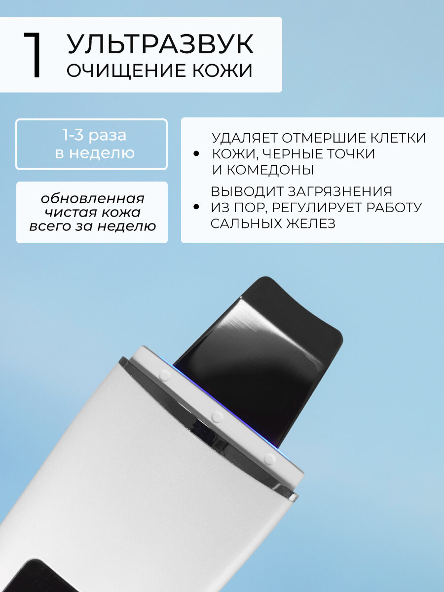 - Бесконтактное удаление загрязнений — технология выталкивает сальные пробки без механического давления