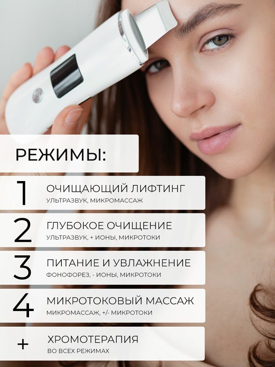 - 3 съемные насадки для разных зон лица