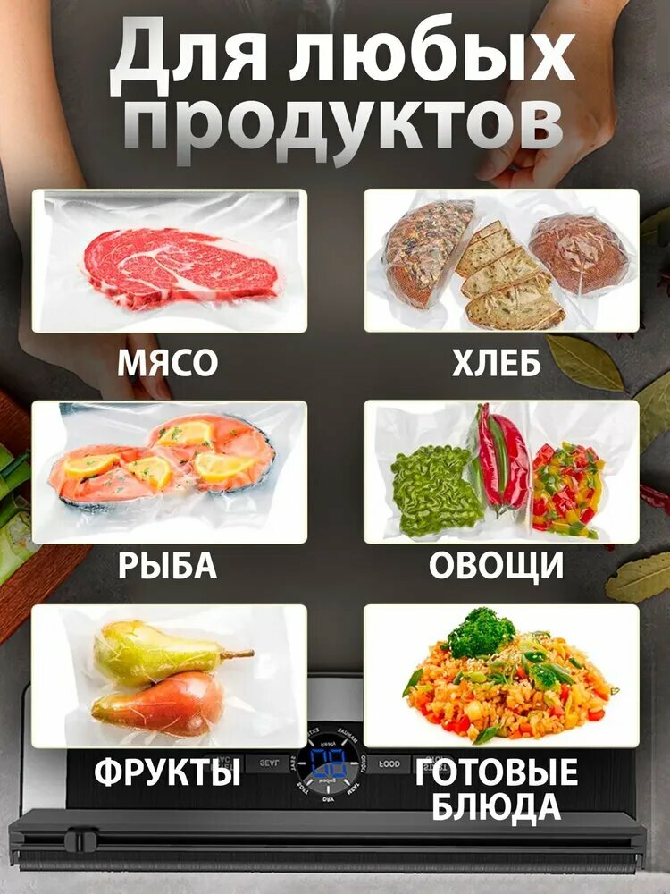 Продлевает свежесть стейков до 12 месяцев (вместо 6 в обычной заморозке). Для сыпучих продуктов подходит режим сухого вакуумирования — предотвращает измельчение кофейных зерен или сахарной пудры.