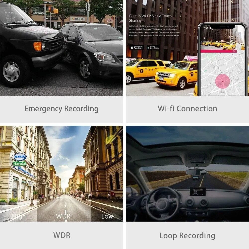 Видеорегистратор Xiaomi YI C10 использует технологию ADAS Advanced Driver Assistance System для анализа дорожной обстановки. Система отслеживает: