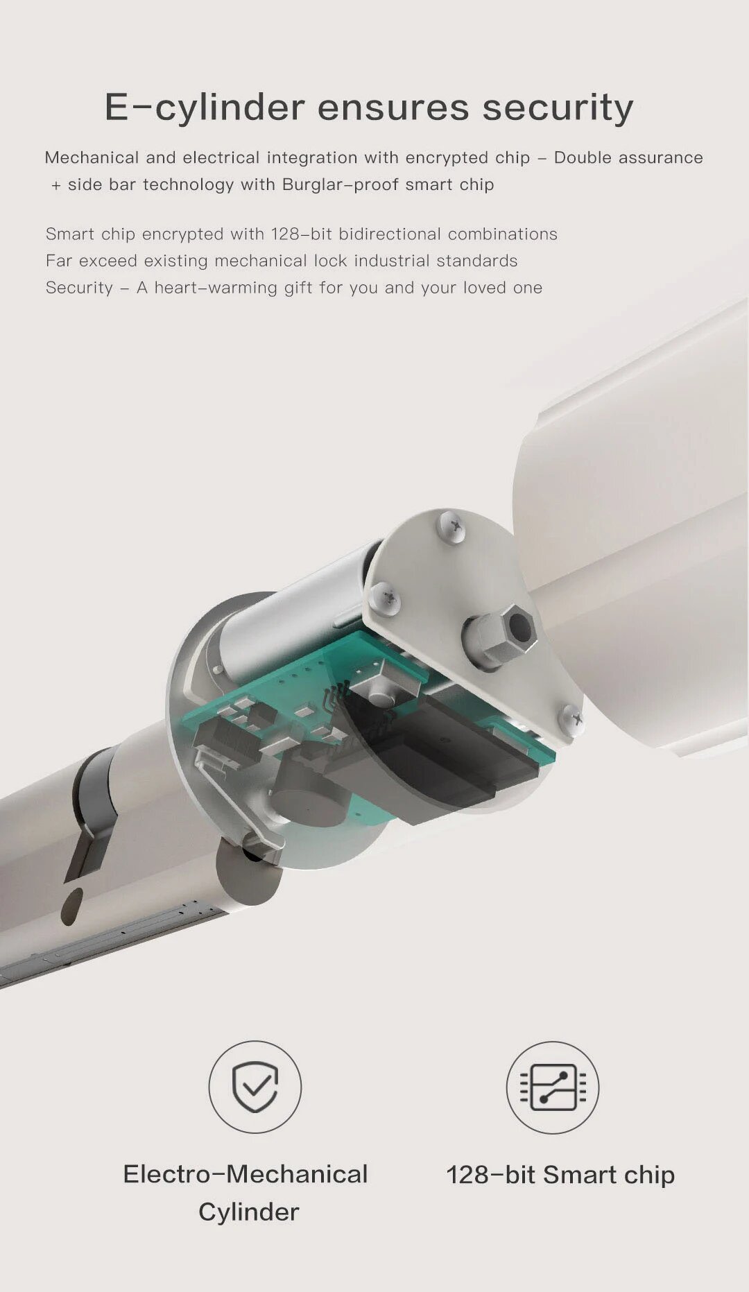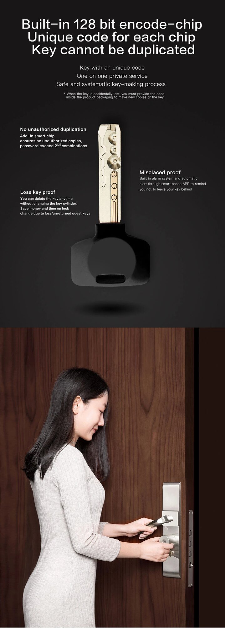 Система использует 128-битное AES-шифрование данных, что исключает программный взлом. Механические дубликаты ключей изготавливаются по технологии Anti-Bump, защищающей от силового вскрытия.