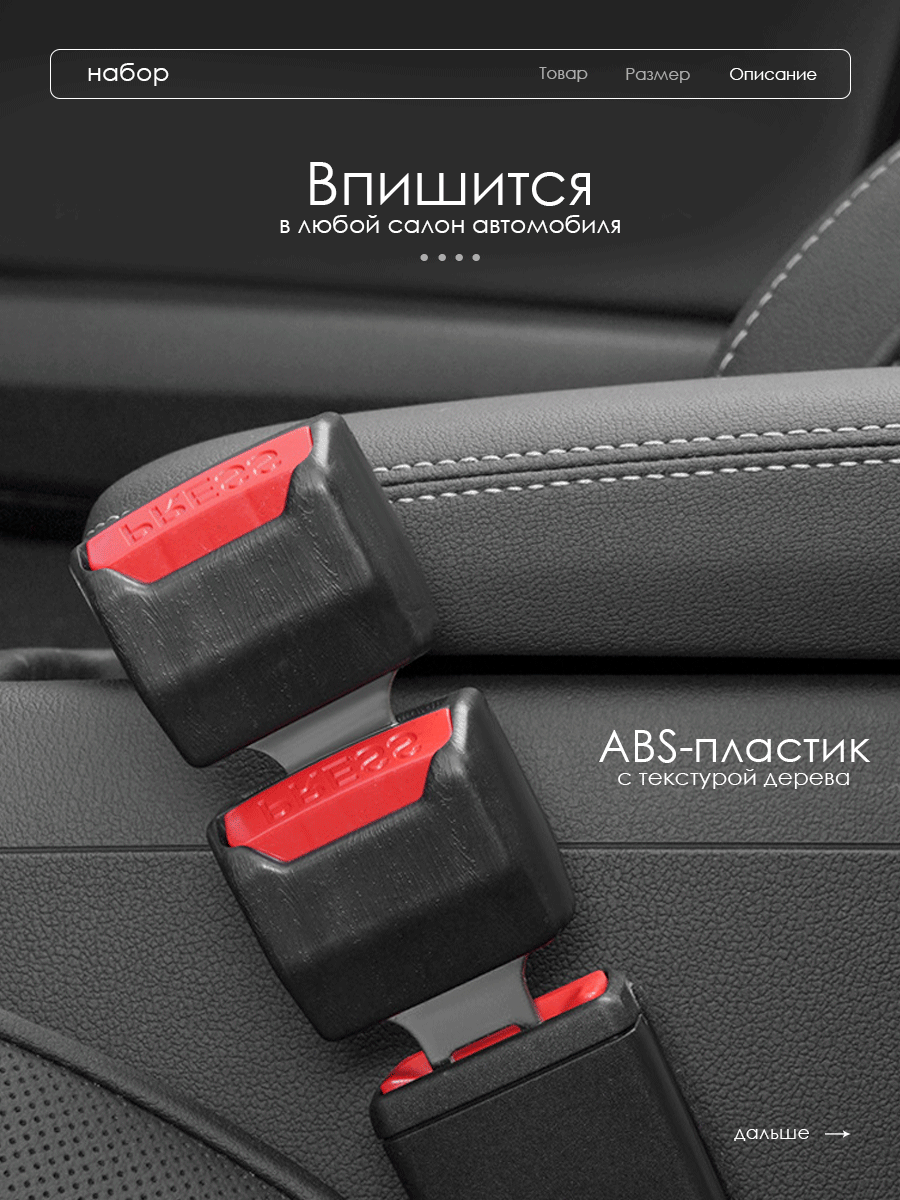 Автомобильная заглушка ремня безопасности имеет технологичное исполнение: стальной язычок фиксатора повторяет контуры оригинального замка, а пластиковый корпус обеспечивает плотное крепление в разъеме. Точная геометрия детали позволяет: