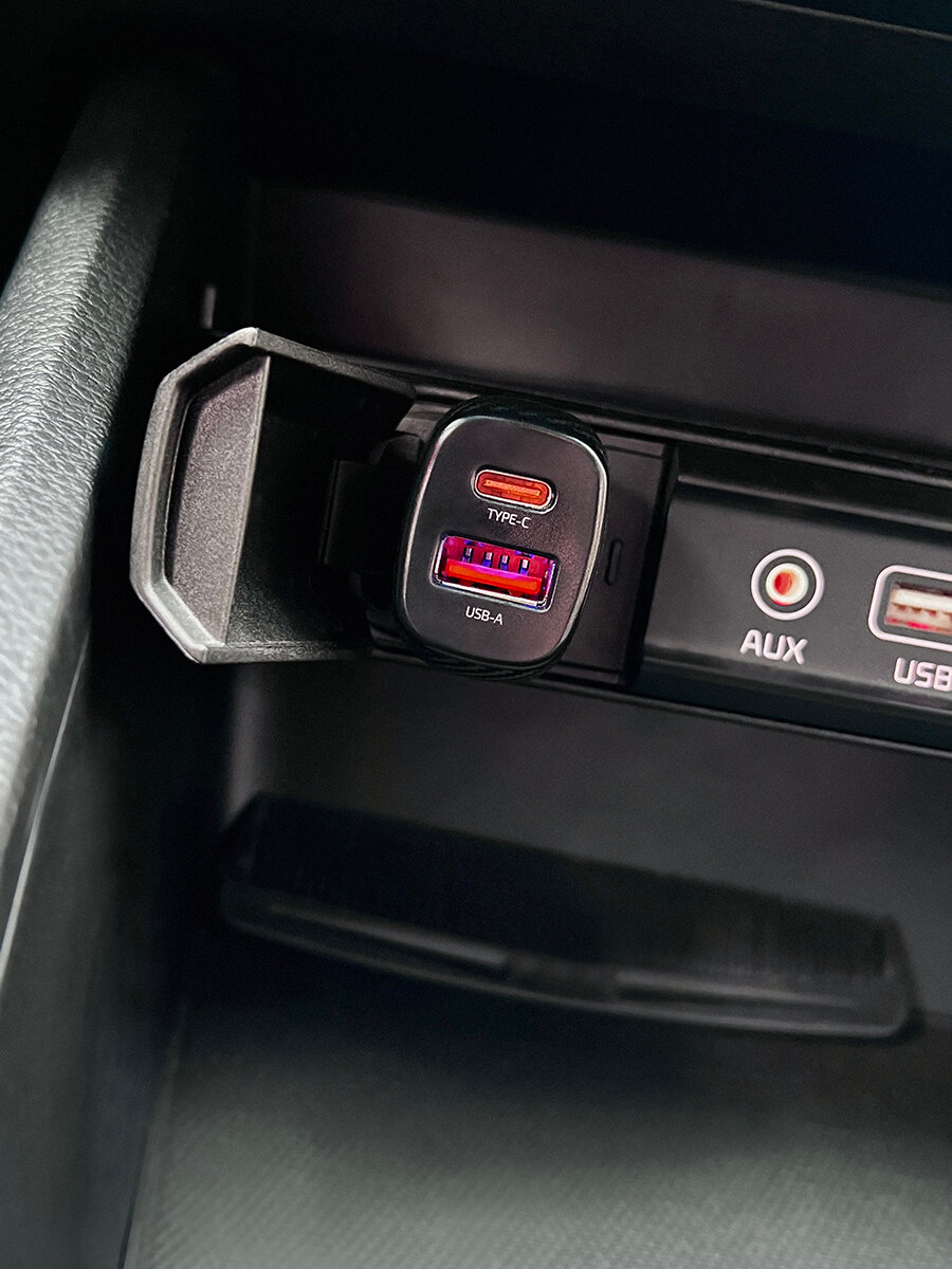 - Baseus Car Charger 65W: более габаритный корпус занимает 2 слота