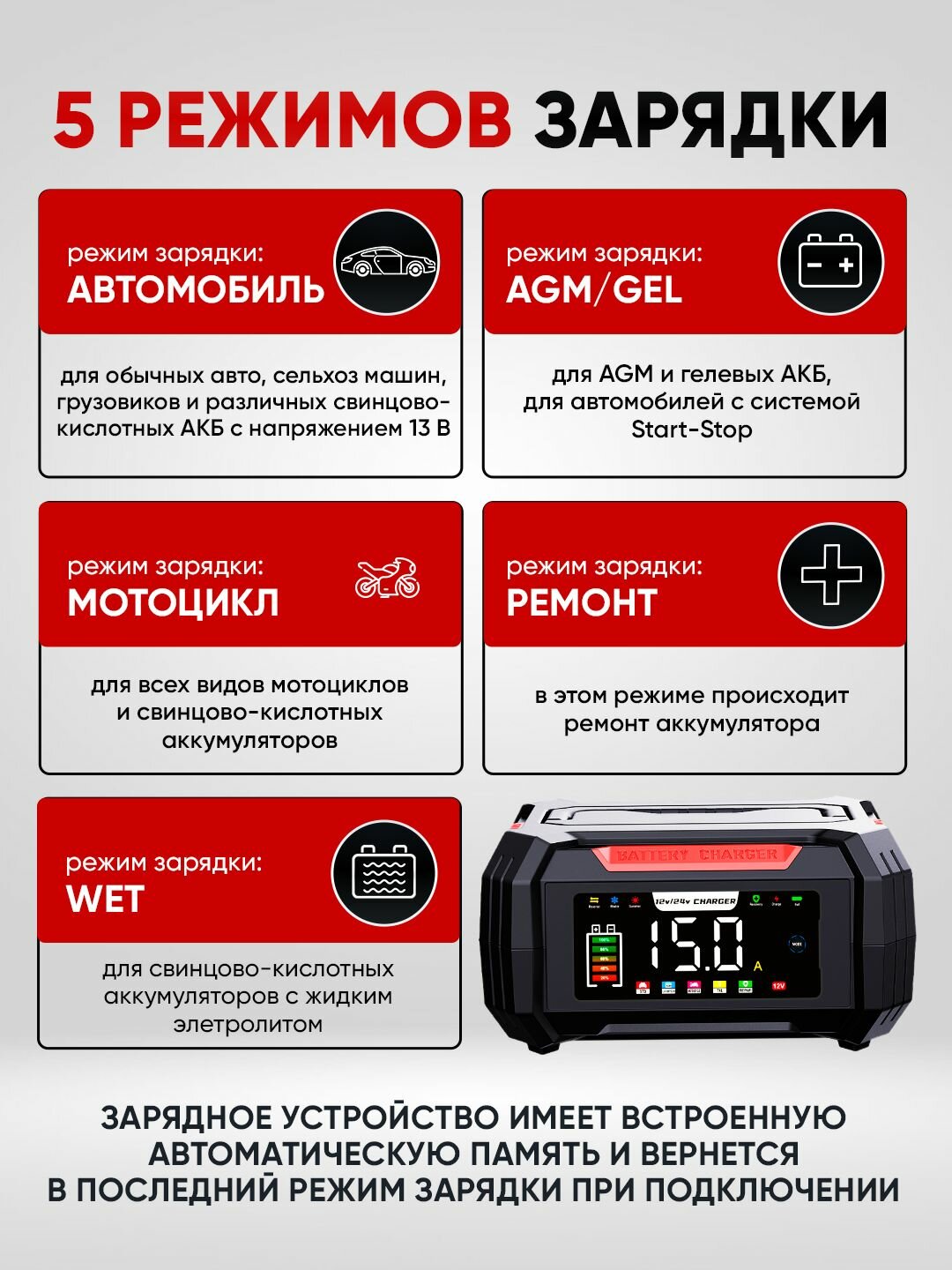 | AGM/GEL | Для современных АКБ | Контроль предельного напряжения |