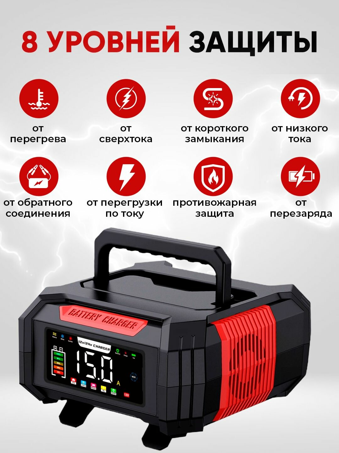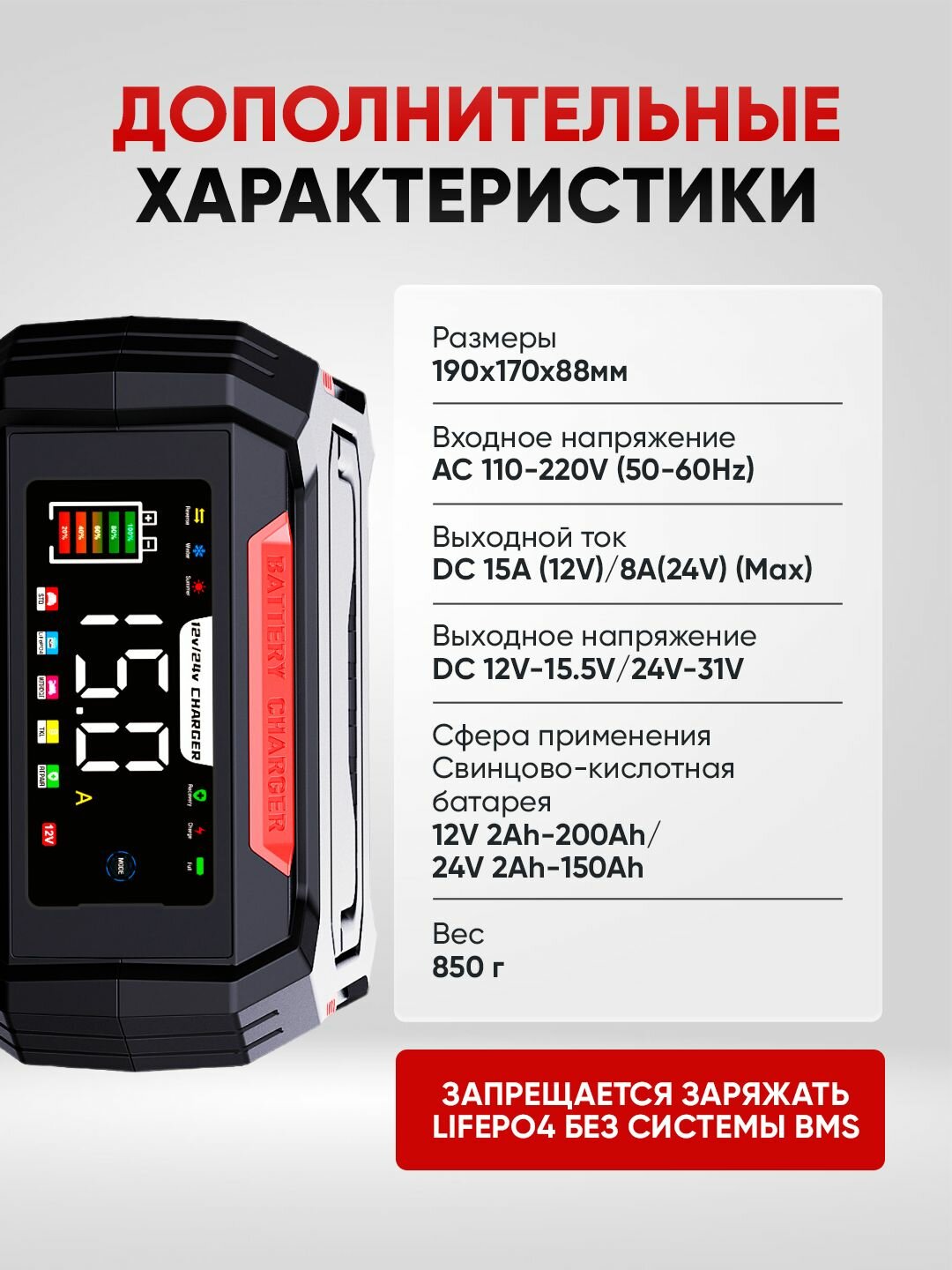 Универсальная совместимость позволяет работать с любыми свинцово-кислотными АКБ от 4 до 100 А·ч. Устройство автоматически определяет оптимальные параметры тока зарядки благодаря микропроцессорному контролю напряжения.
