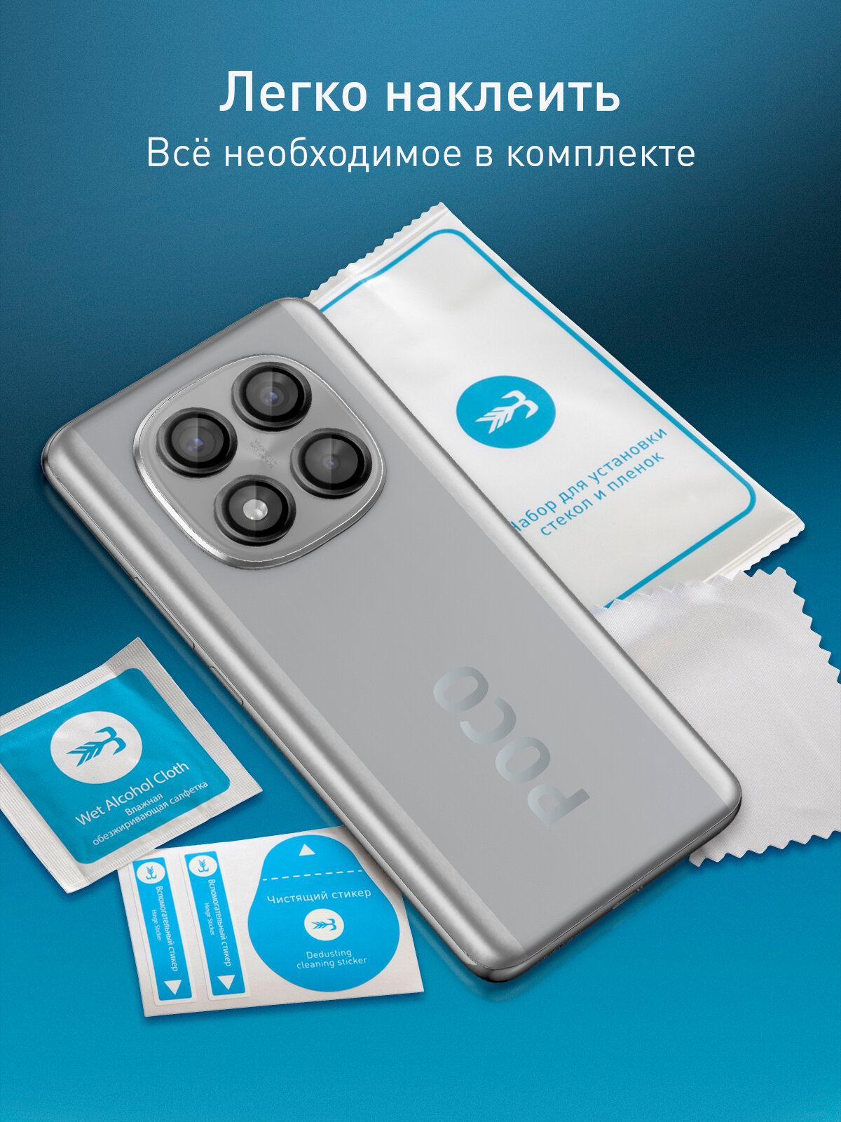 Комплект включает рамку-кондуктор для монтажа за 33 секунды без пузырей — просто снимите защитную плёнку и прижмите стекло к камере. Перекрёстная гарантия на 12 месяцев покрывает: