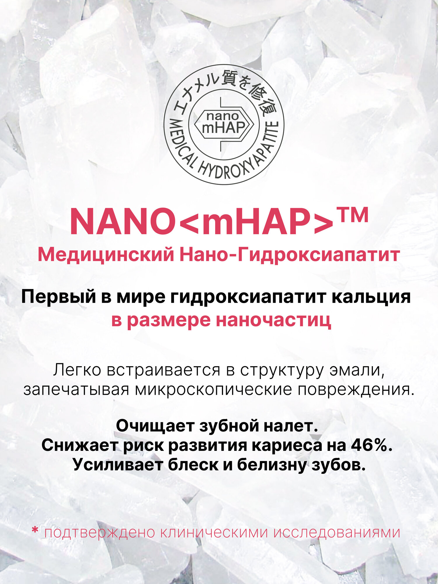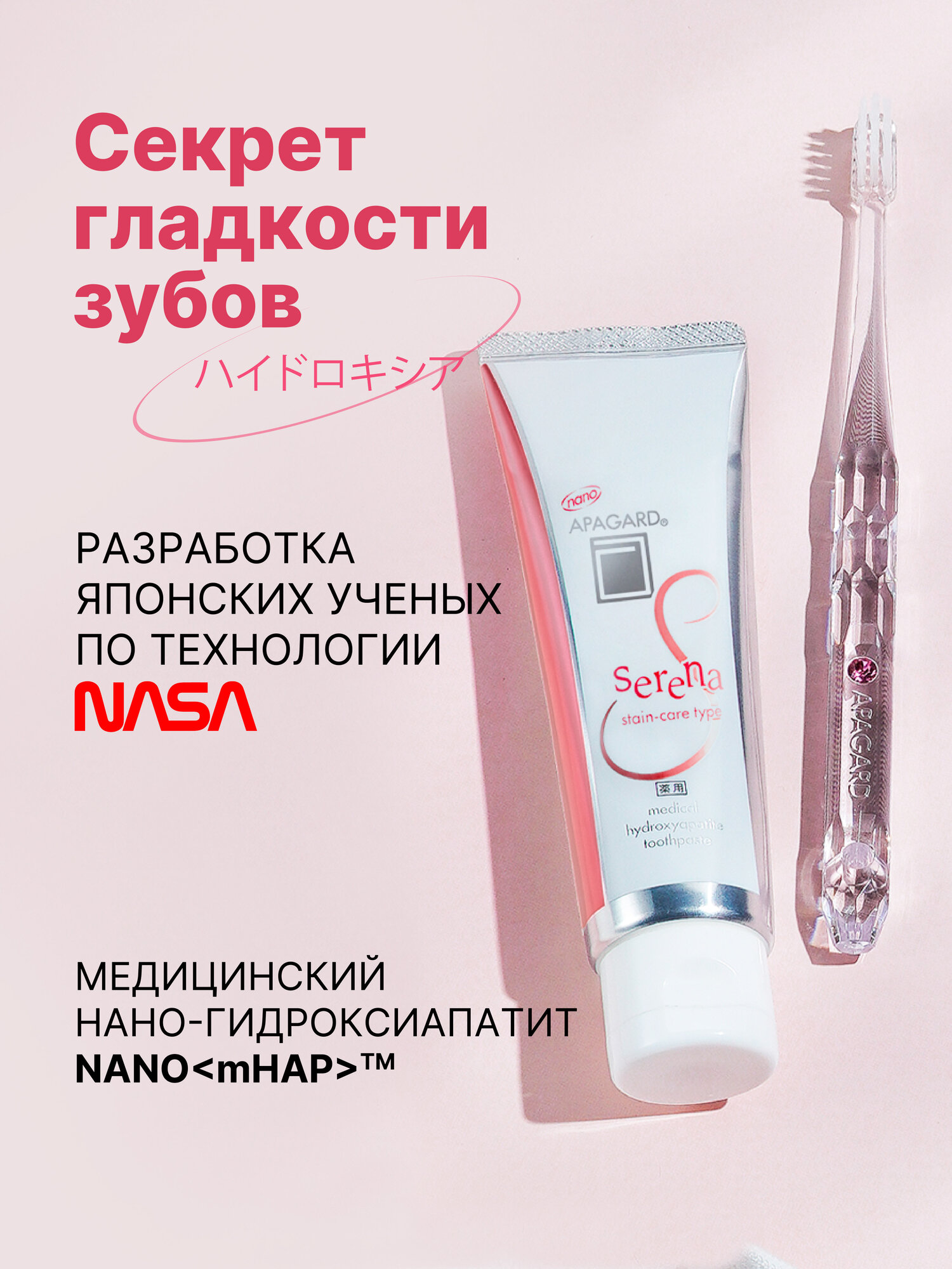 Зубная паста Apagard Serena от Mitsui Pharmaceuticals использует технологию nano-hydroxyapatite — синтезированный аналог естественного гидроксиапатита зубной эмали. Клинические исследования подтверждают: