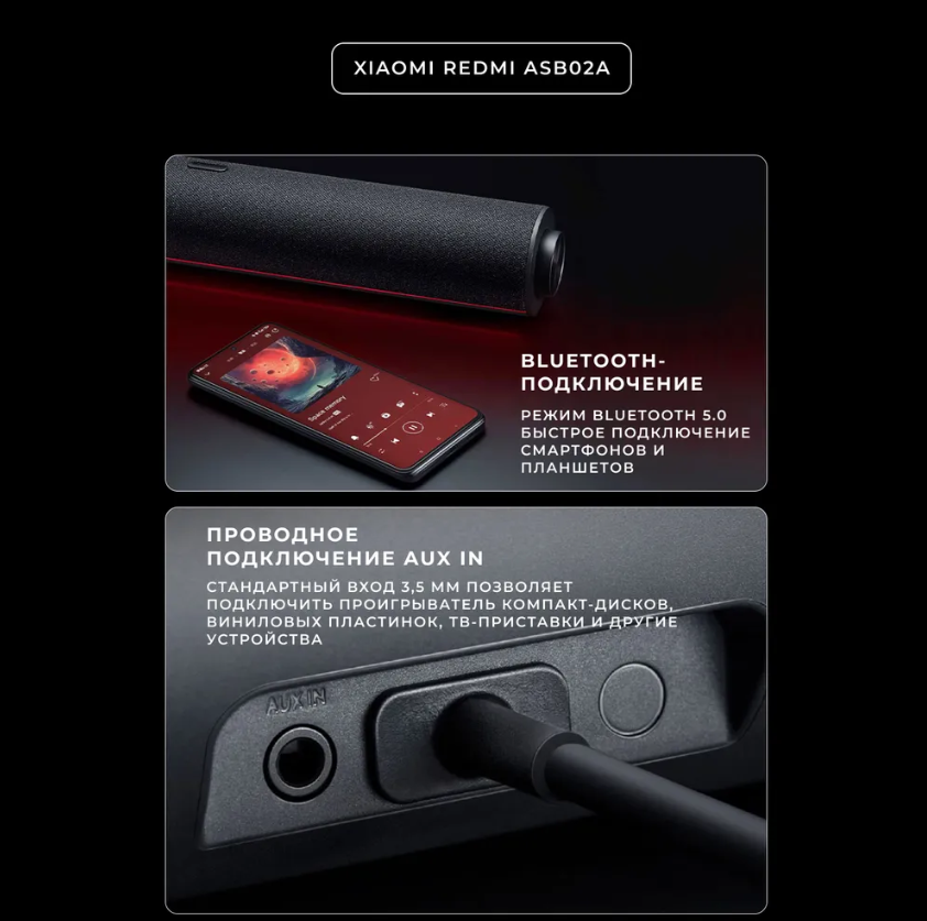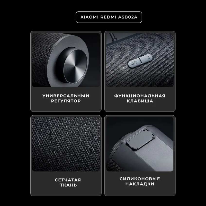 Звуковая панель Redmi ASB02A от Xiaomi создает объемный 5.0 звук через однополосные динамики закрытого типа. Благодаря конструкции корпуса из ABS-пластика с защитной сеткой устройство подходит для установки под телевизором или монитором. Bluetooth 5.0 модуль обеспечивает стабильное соединение с ПК, смартфоном и Smart TV на расстоянии до 10 метров.